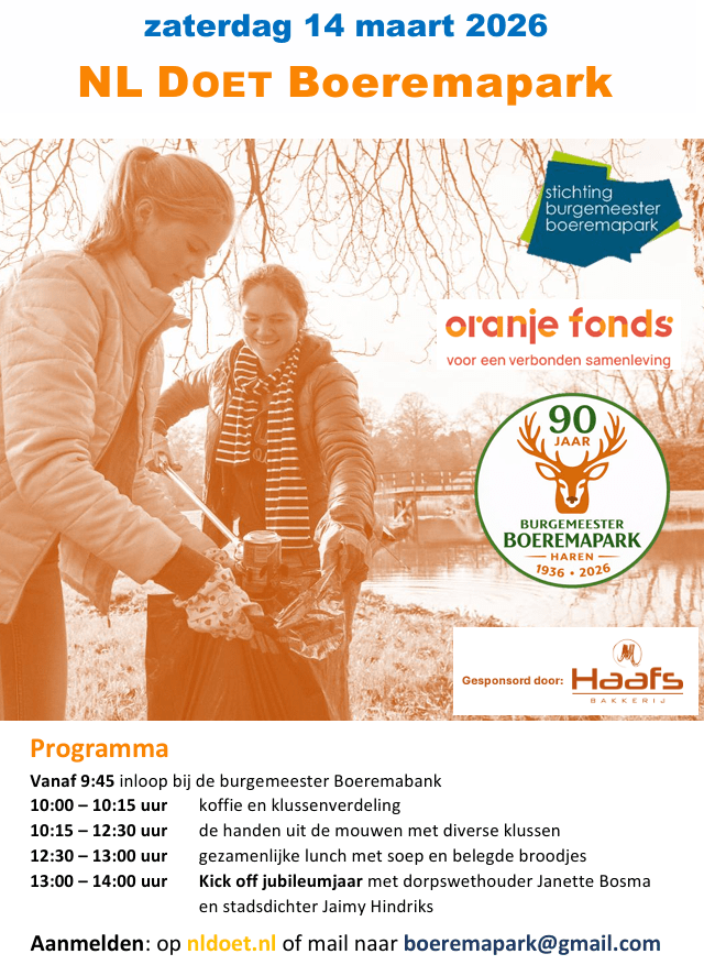 Samen de handen uit de mouwen in het park, met aansluitend kick-off jubileumjaar.14 maart 202611 dagen te gaan.Volg ons op X