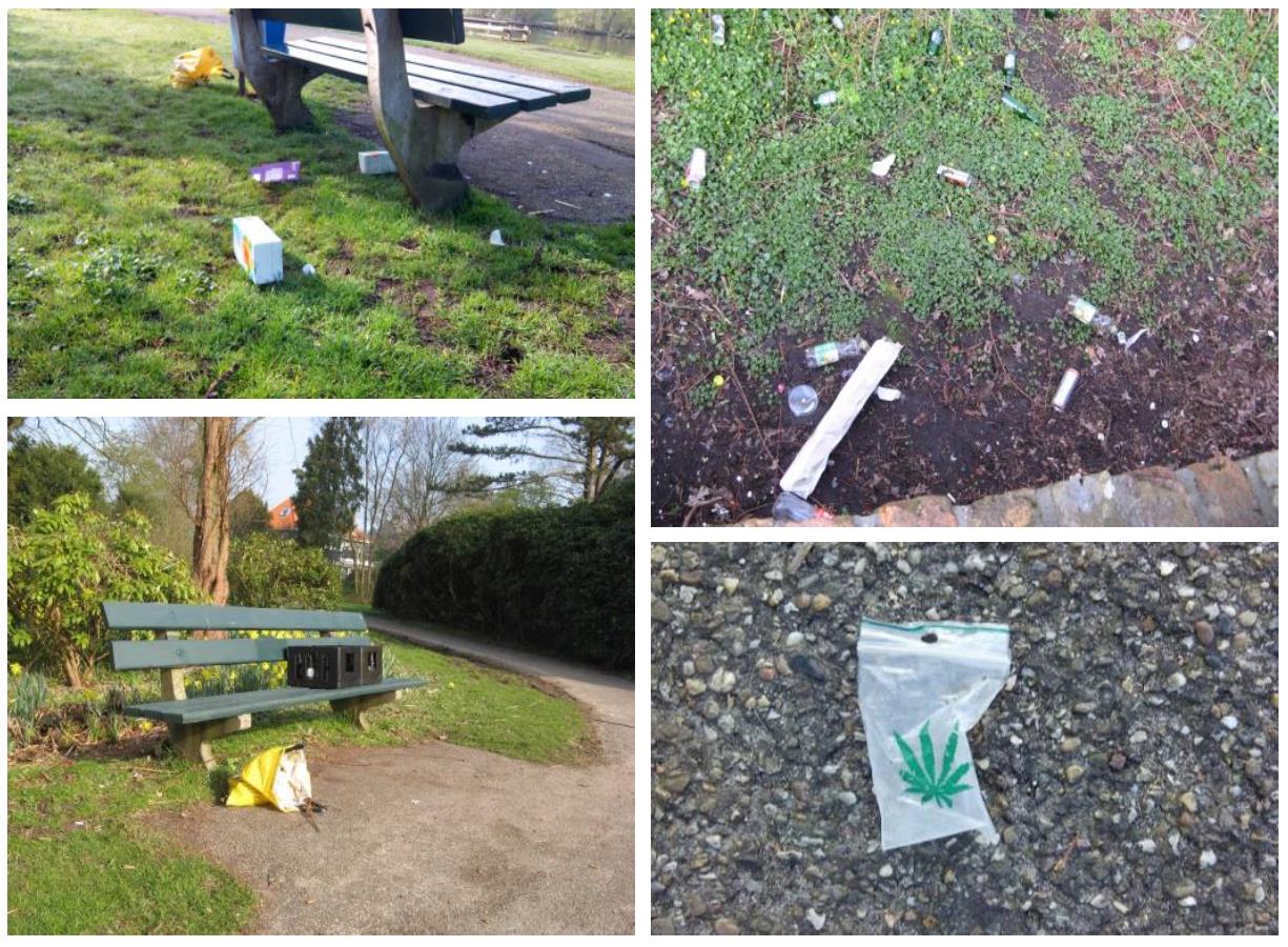 Jong en oud genoten afgelopen weekend van het park bij haast zomerse temperaturen. Alleen jammer van de rotzooi die, een week nadat alle zwerfvuil was opgeruimd, achteloos werd neergegooid waar het uitkwam. Met name vrijdagavond laat was een grote groep jongeren nadrukkelijk aanwezig in het park. Daarbij werden flessen kapot gegooid en werd schade aangericht aan de Rododendrons. Dank aan de mensen die de volgende dag stilletjes de lege ijsdozen, chipszakken en de kapot gesmeten bierflessen hebben opgeruimd!
