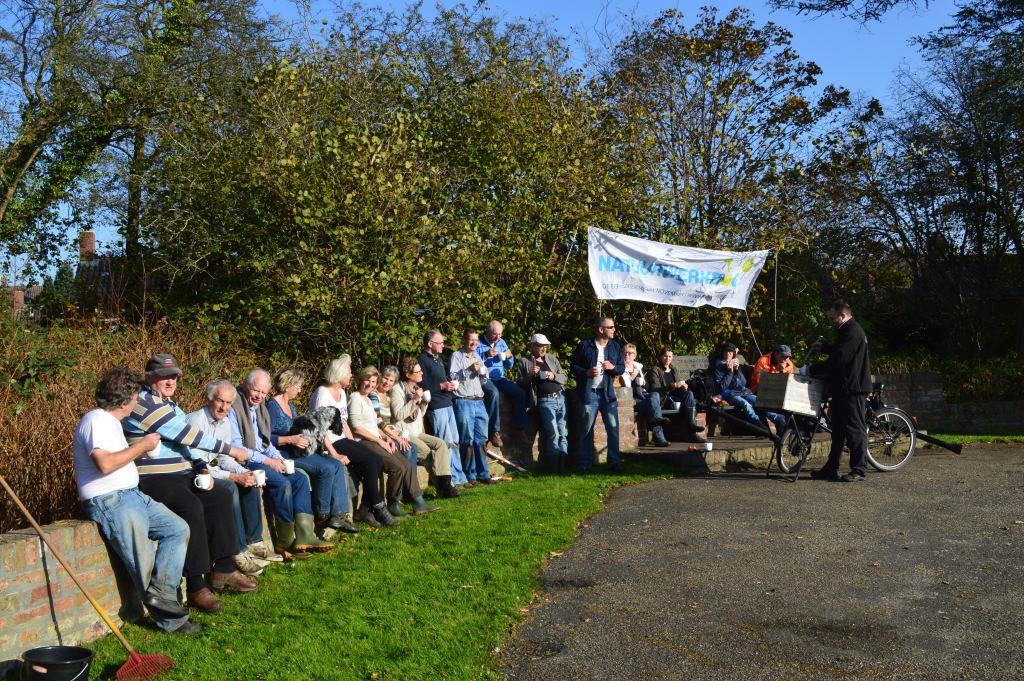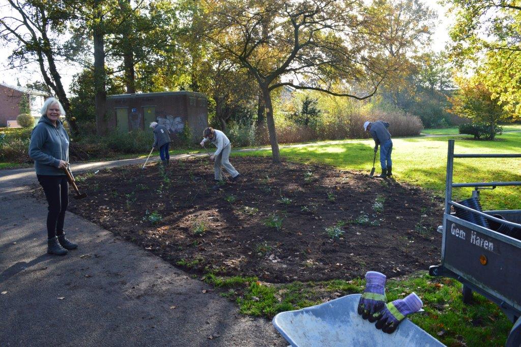 Rond 13:00 uur serveerde Pieter voor de harde werkers een overheerlijke pompoensoep met zelfgebakken brood. Er werd in het zonnetje nog lang nagepraat. Het park werd tegen die tijd ook druk bezocht door anderen. Veel Syrische vluchtelingen uit het AZC Onnen hebben het park inmiddels ook ontdekt. Zij bezoeken het park regelmatig en gaan er bij mooi weer vaak picknicken.