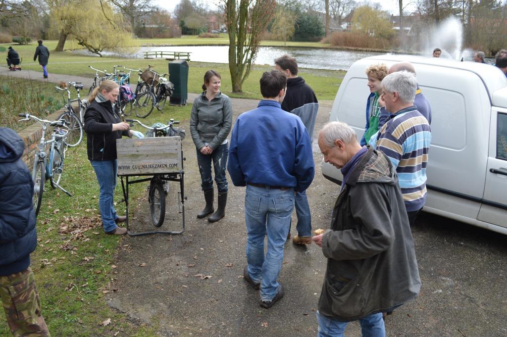 Rond de klok van één uur waren alle klussen geklaard en werden de vrijwilligers door Manon voorzien van een kop heerlijke home made tomatensoep en ambachtelijk brood. Dat werd gretig afgenomen en menigeen meldde zich voor een tweede kop. Onder genot van de soep en het brood werd tevreden nagepraat over de geslaagde dag in het park en het vele werk dat was verzet.