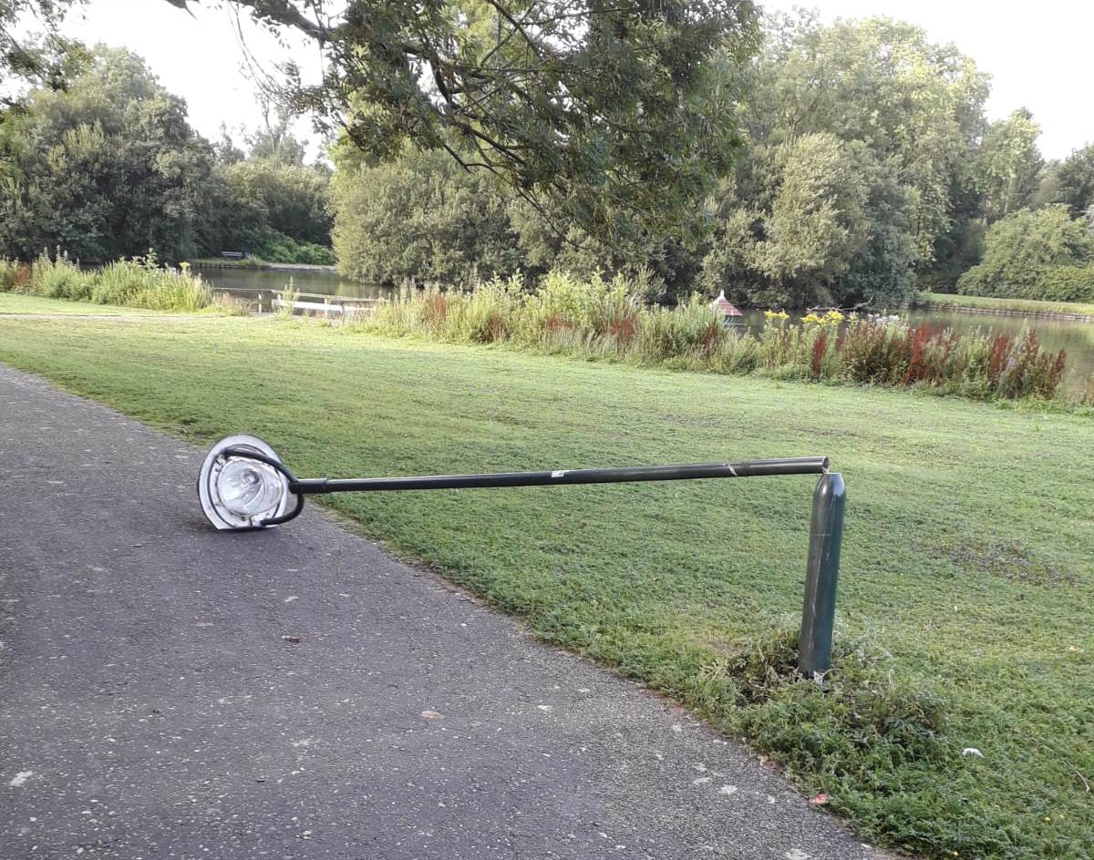 De vrijwilligers van de Stichting hebben in 2012 veel tijd geïnvesteerd om de verlichting in het park te verbeteren en deze mooie lichtmasten geplaatst te krijgen. Dan is het hoogst frustrerend om nu te moeten zien hoe dit door pure baldadigheid wordt vernield. Wij hebben aangifte bij de politie gedaan en willen graag weten wie dit heeft gedaan. Heeft u op de bewuste avond iets gezien dat kan helpen de dader(s) op te sporen? Laat het ons weten!