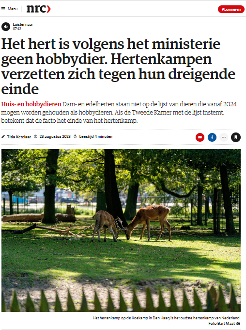 Heel erg jammer. Oud en jong genieten van het hertenkamp! Hier in Haren en ook elders in Nederland!
