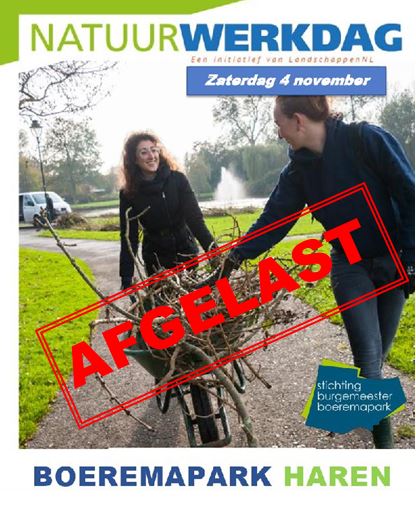 Door onvoorziene omstandigheden is de Natuurwerkdag van zaterdag 4 november in het Boeremapark afgelast. Op 24 maart 2024 gaan we graag weer met vrijwilligers aan de slag.