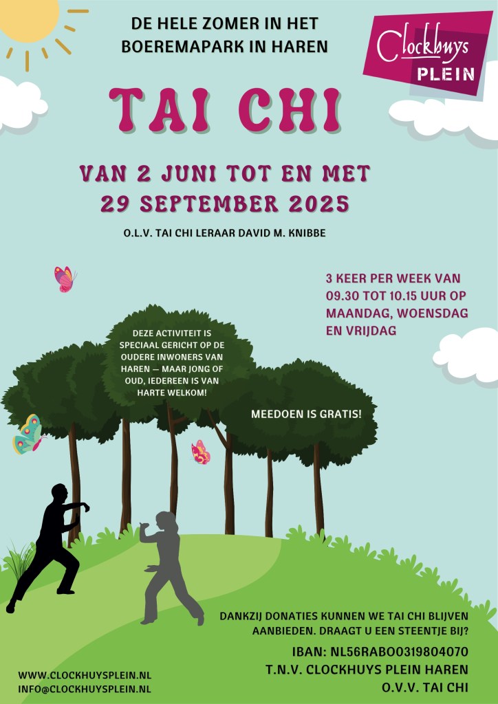 Woensdag 23 juli kwam RTV Noord langs in het Boeremapark voor een reportage over Tai Chi in het park. De Tai Chi lessen van David Knibbe worden wekelijks gegeven op maandag, woensdag en vrijdag en starten om 9:30 uur. Deelname is tijdens de zomer gratis! Klik op de foto voor de reportage van RTV Noord.