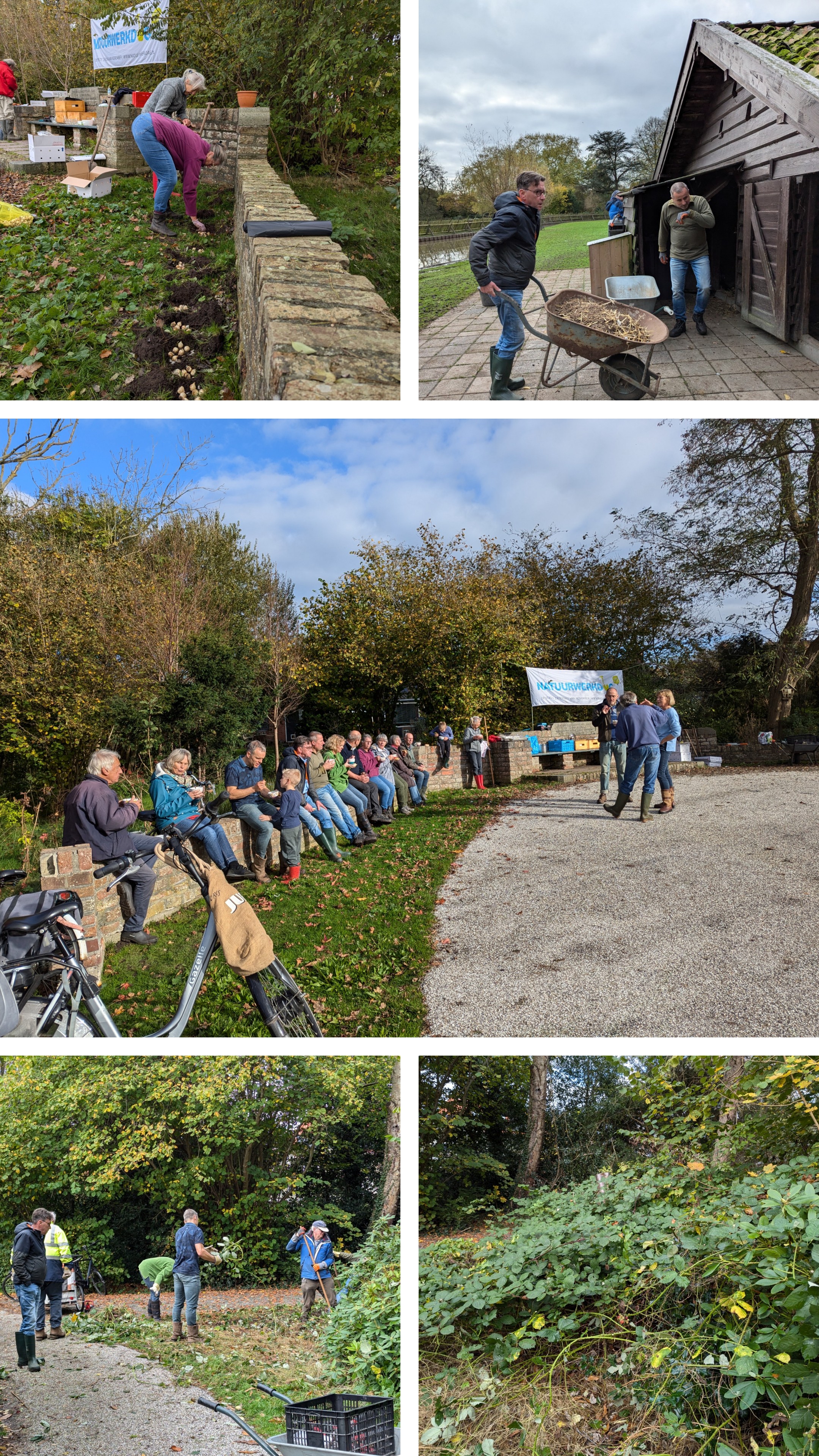Afgelopen zaterdag 2 november hebben 24 vrijwilligers de handen flink uit de mouwen gestoken in een zonovergoten Boeremapark. Er is in korte tijd weer heel veel werk verzet. De stallen in het hertenkamp werden uitgemest, er zijn bollen gepoot, er werden 3 zakken zwerfvuil opgehaald, er zijn egelhuisjes geplaatst, er is gemaaid en er is weer een flinke hoeveelheid bramen verwijderd. De jongste deelnemer was 6 jaar en de oudste maar liefst 80 jaar. Petje af voor de inzet van deze vrijwilligers. Na de klussen werd er er gezellig nagepraat onder het genot van een lekker kop soep en broodjes. Kortom: weer een zeer geslaagde Natuurwerkdag 2024.